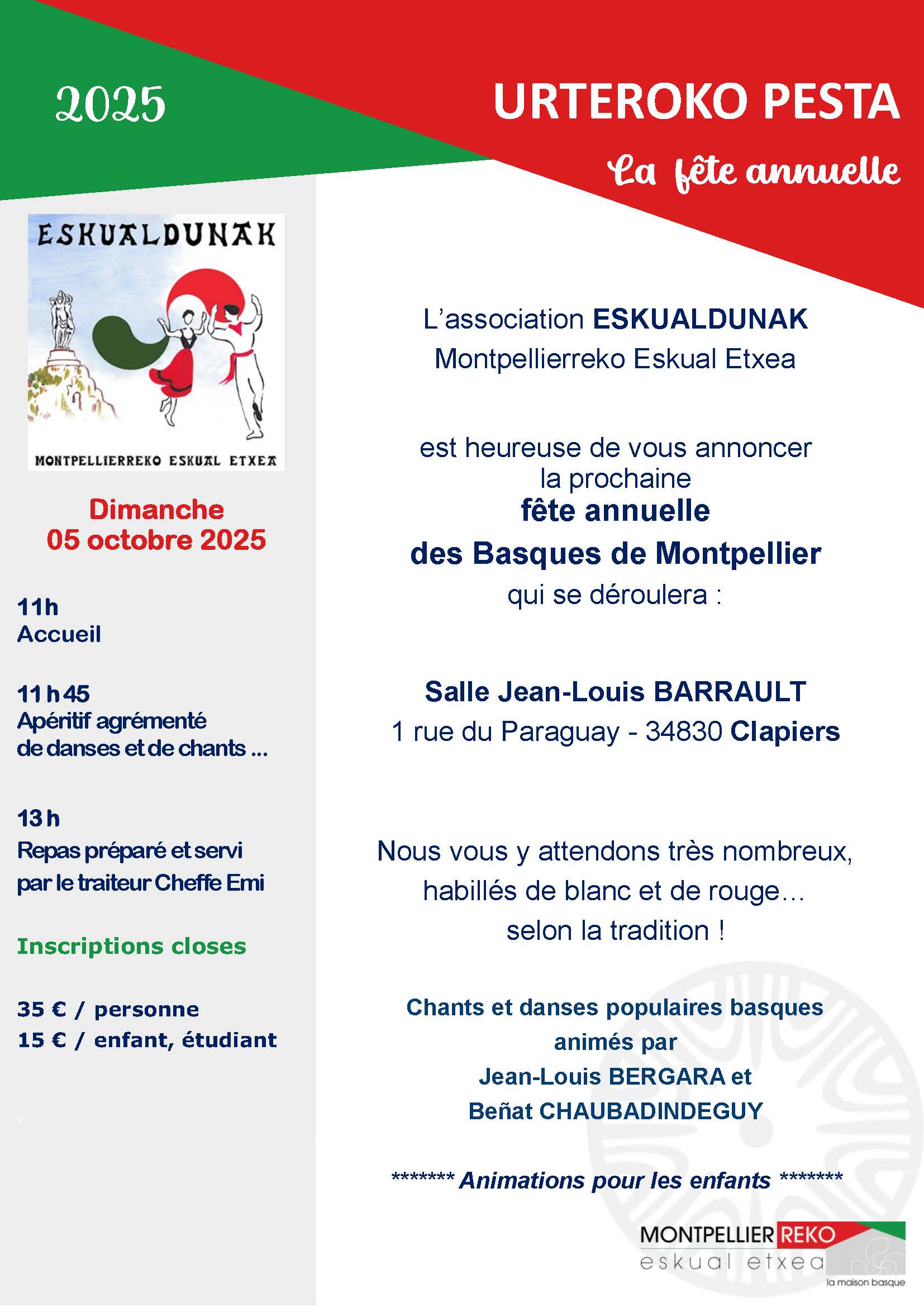 Eskualdunak – Montpellierreko eskual Etxea – est une association dont l’objectif est de faire vivre la culture basque dans la région de Montpellier. Elle reproduit tout au long de l’année un petit coin de pays à travers différentes activités traditionnelles, et plus ponctuellement à l’occasion de diverses manifestations.