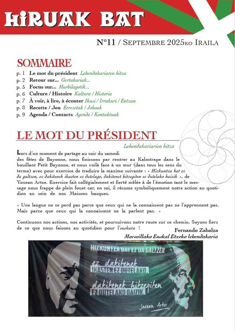 Le numéro 11 d’Hiruak Bat, journal réalisé à 3 mains entre les Maisons basques de Montpellier, Marseille et Lyon, est disponible.
