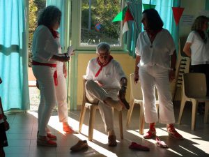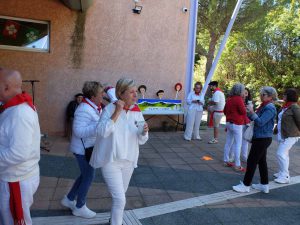 La journĂ©e fut fort occupĂ©e entre danses, chants, paquito, pesĂ©e du fromage de chez Agour, txapel jokoa, 1re Ă©dition du lancer d’espadrille de la Maison basque de Montpellier, remportĂ©e par Alvaro, de la Maison basque de Lyon, et quelques parties de mus en clĂŽture.